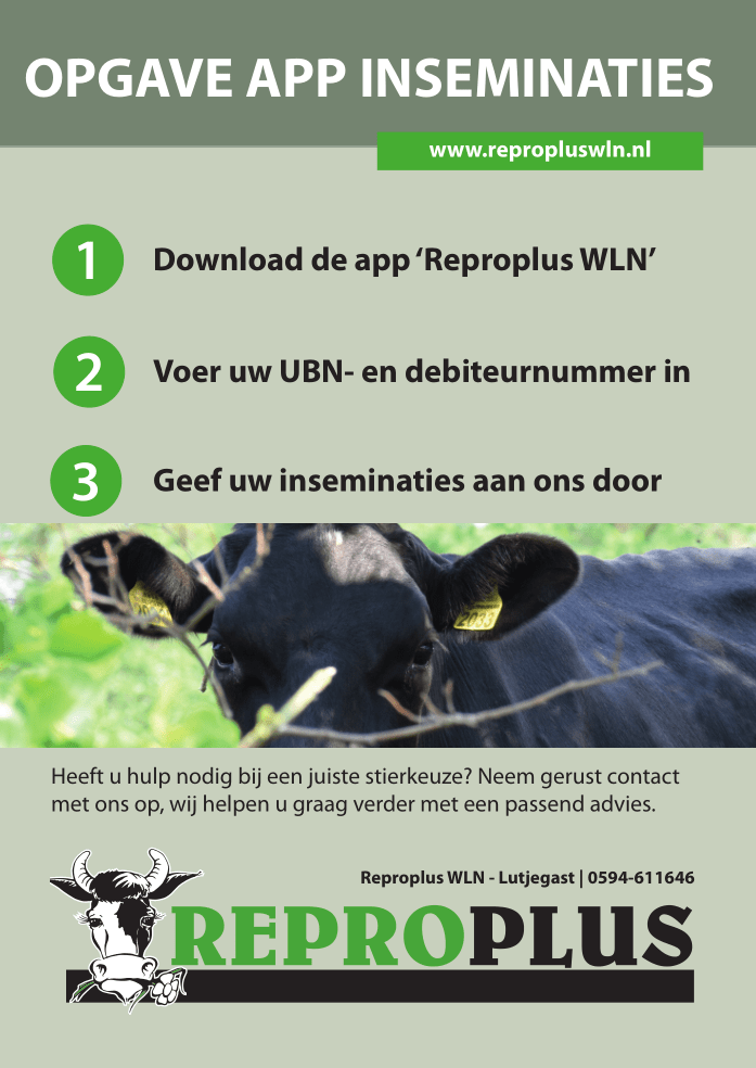 Vanaf nu kunt u inseminaties doorgeven via onze app ‘Reproplus WLN’.